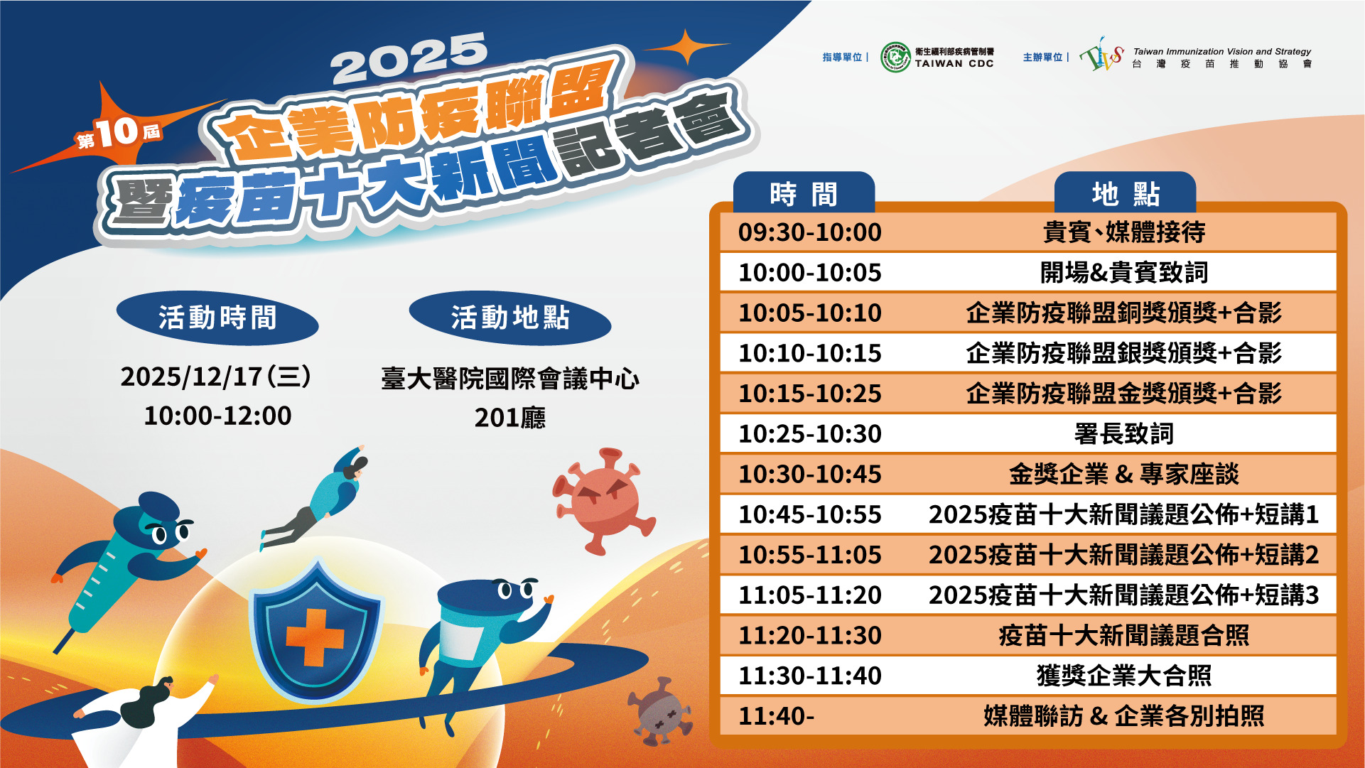 114年12月17日舉辦第十屆「2025企業防疫聯盟暨十大疫苗新聞記者會」