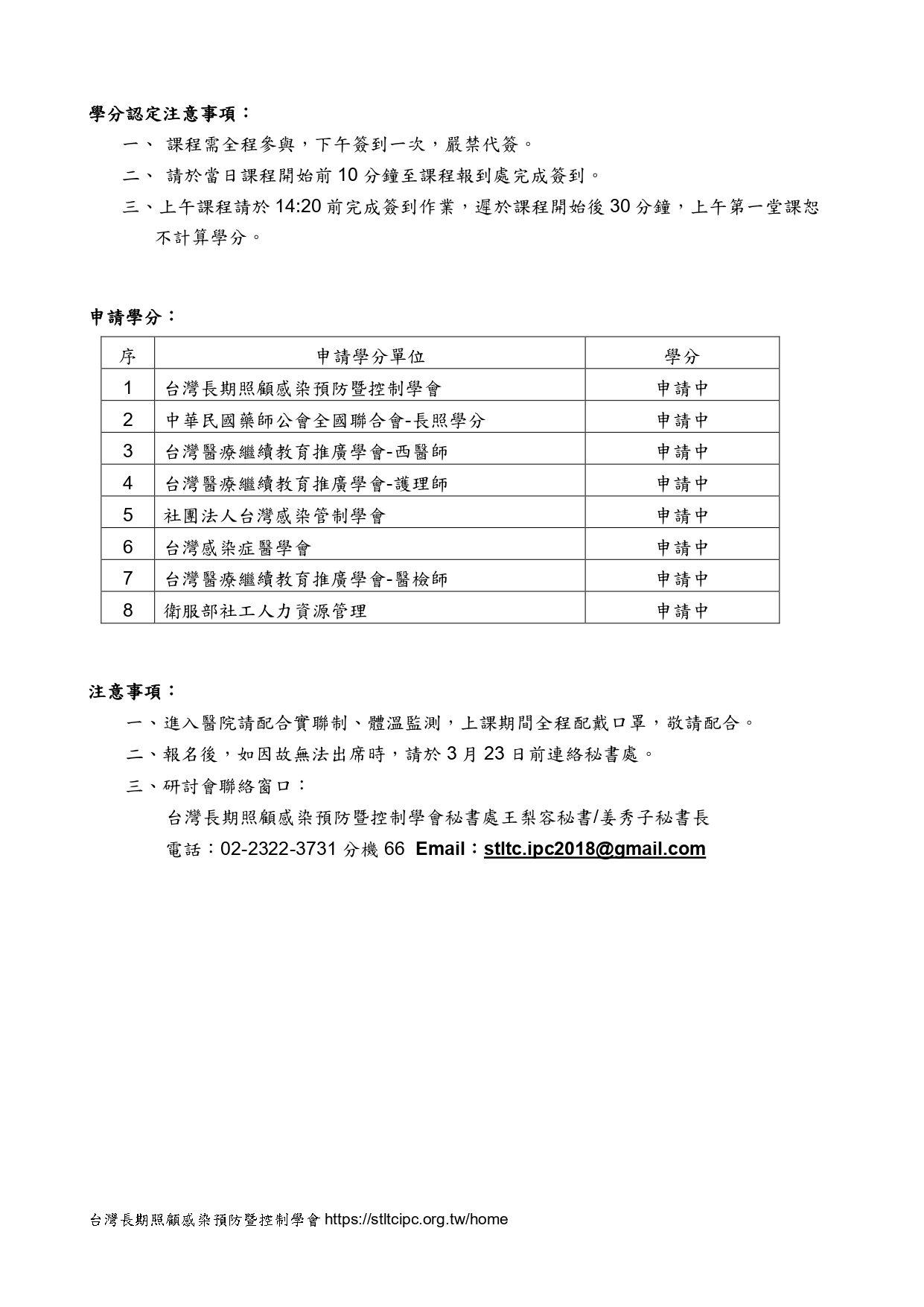 主辦單位:台灣長期照顧感染預防暨控制學會